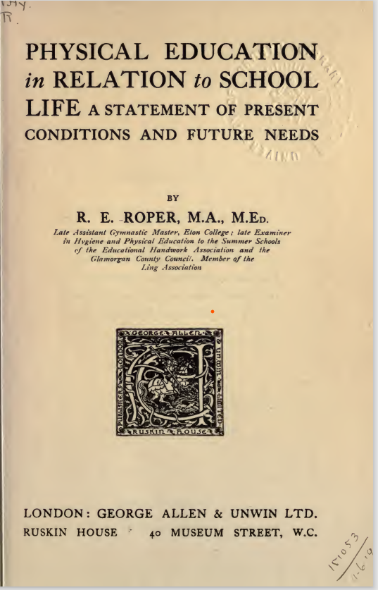 Extracted from ‘Reginald Roper and the Secondary Schoolmasters’ Physical Education Association: physical literacy for the whole man, 1905–1939’, Sport in History, 2022: https://www.tandfonline.com/doi/full/10.1080/17460263.2022.2066715